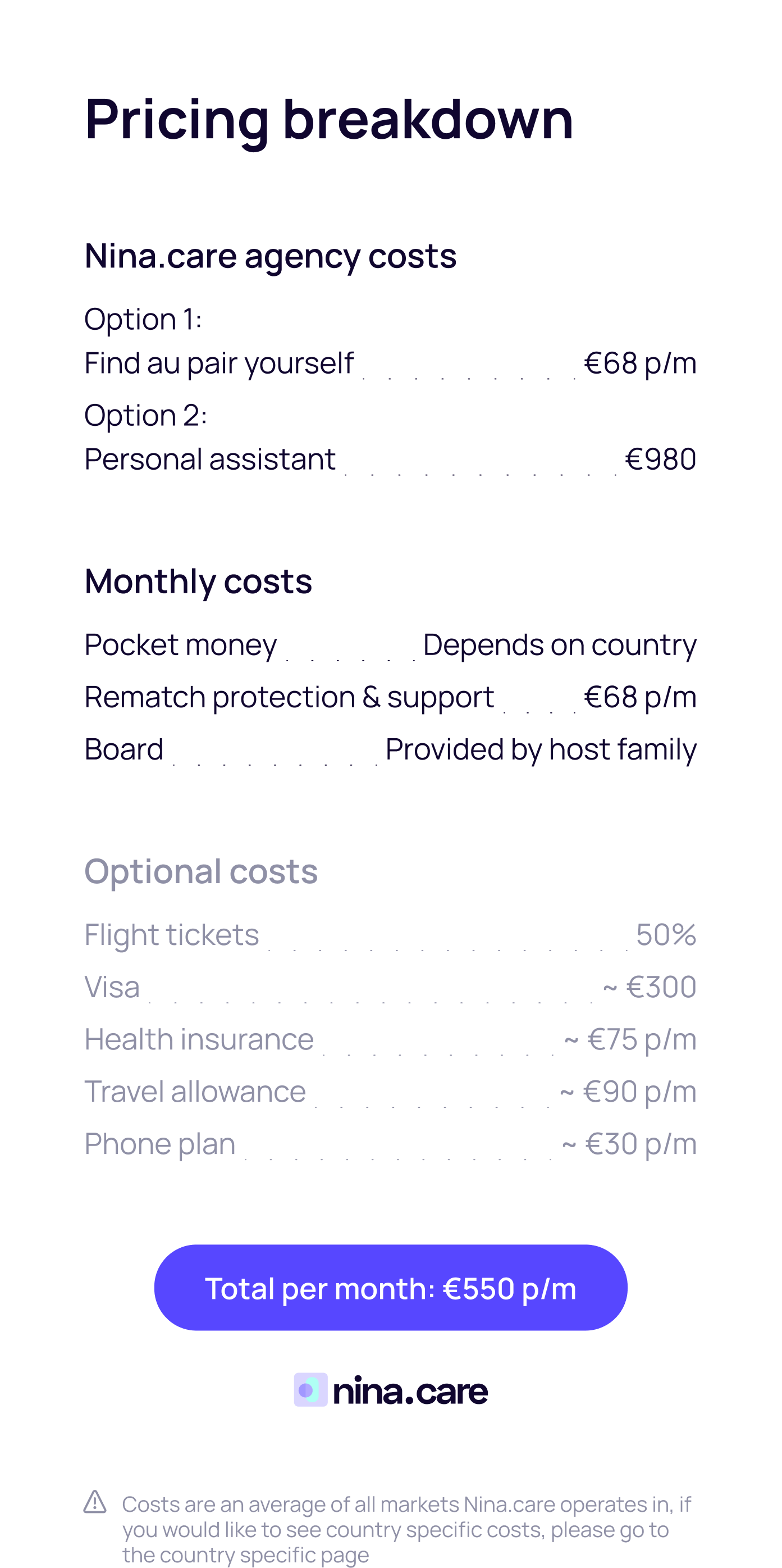 Hosting an au pair usually means covering pocket money, room and board, insurance, and sometimes language or agency fees. Exact costs vary per country but are generally €300-600 per month. Families should budget realistically, and au pairs should understand that pocket money is not a salary.