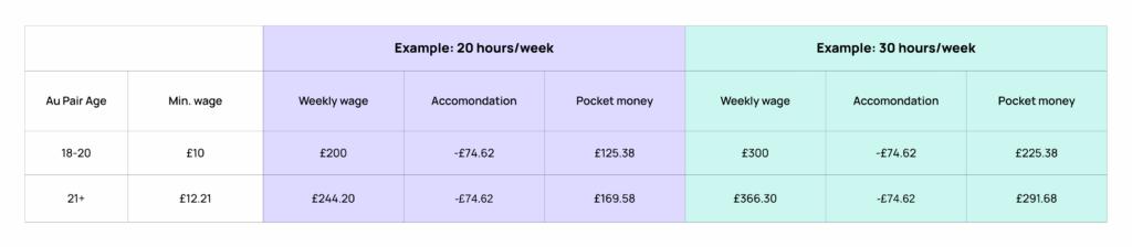 | Pay | At least UK minimum wage | At least UK minimum wage | Pocket money + room & food | Pocket money + room & food |