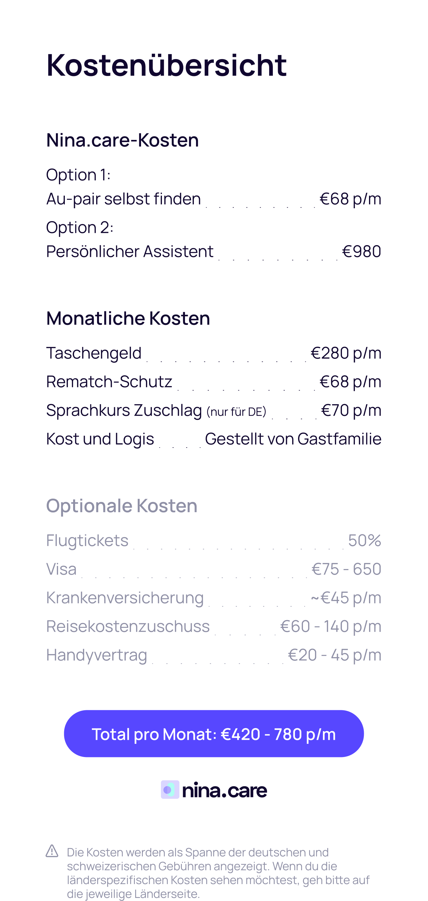 Finde detaillierte Informationen zu den Kosten in deinem Land!