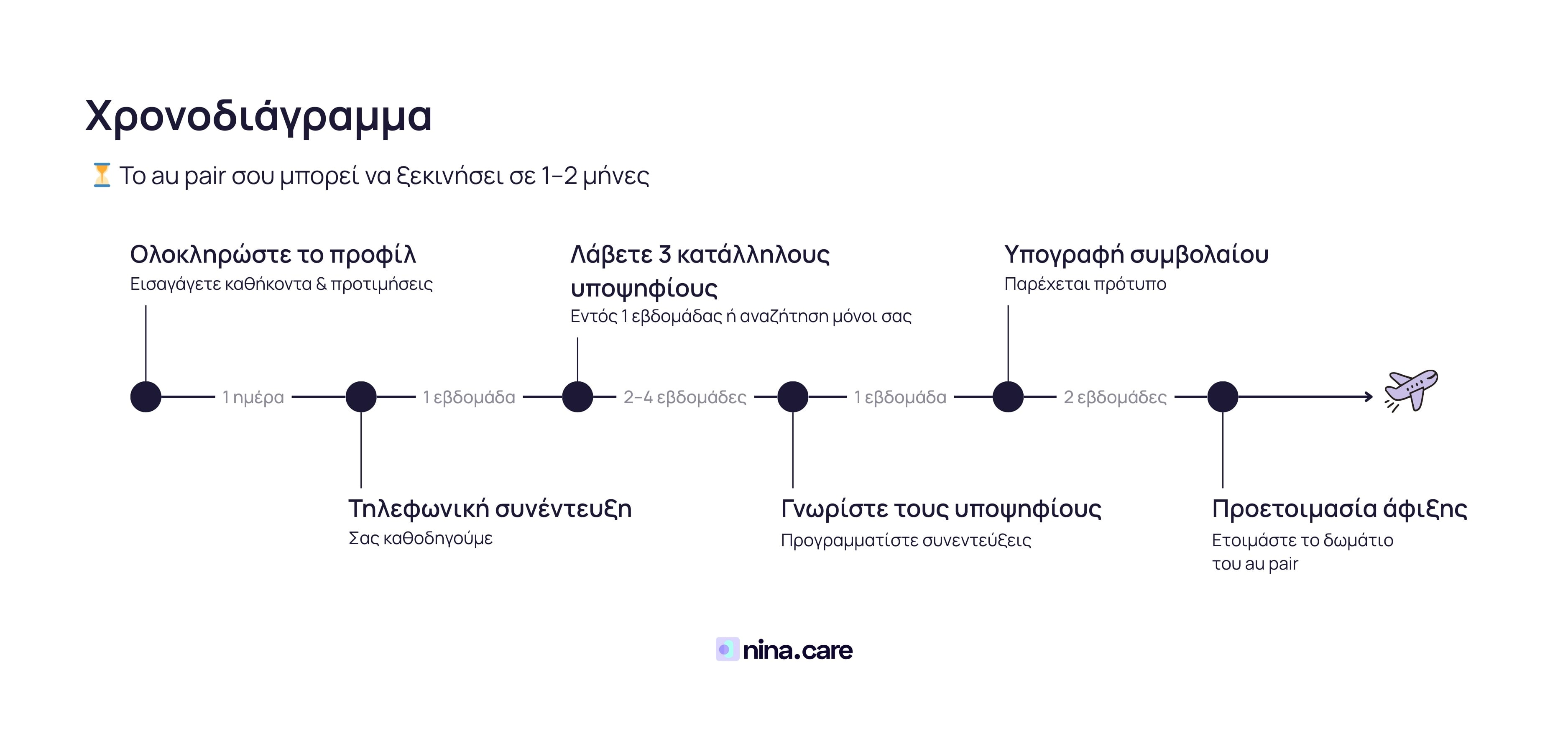 Μόλις κλείσει το ταίριασμα, οι άου-πέρ από ΕΕ μπορούν να ξεκινήσουν μέσα σε 2–4 εβδομάδες, ενώ όσοι είναι εκτός ΕΕ χρειάζονται συνήθως 2–3 μήνες λόγω βίζας. Τα γραφεία βοηθούν να τρέξουν πιο γρήγορα τα χαρτιά.