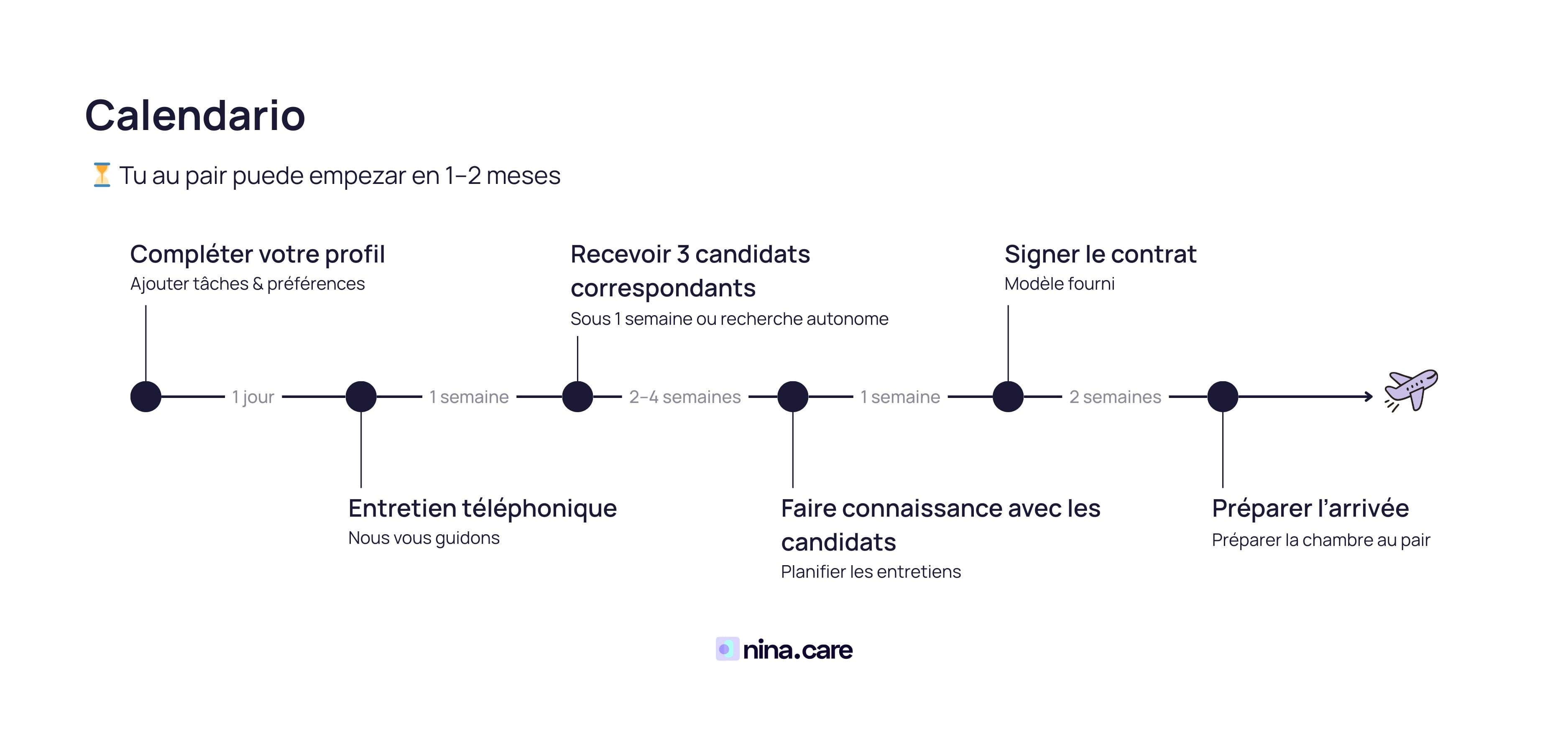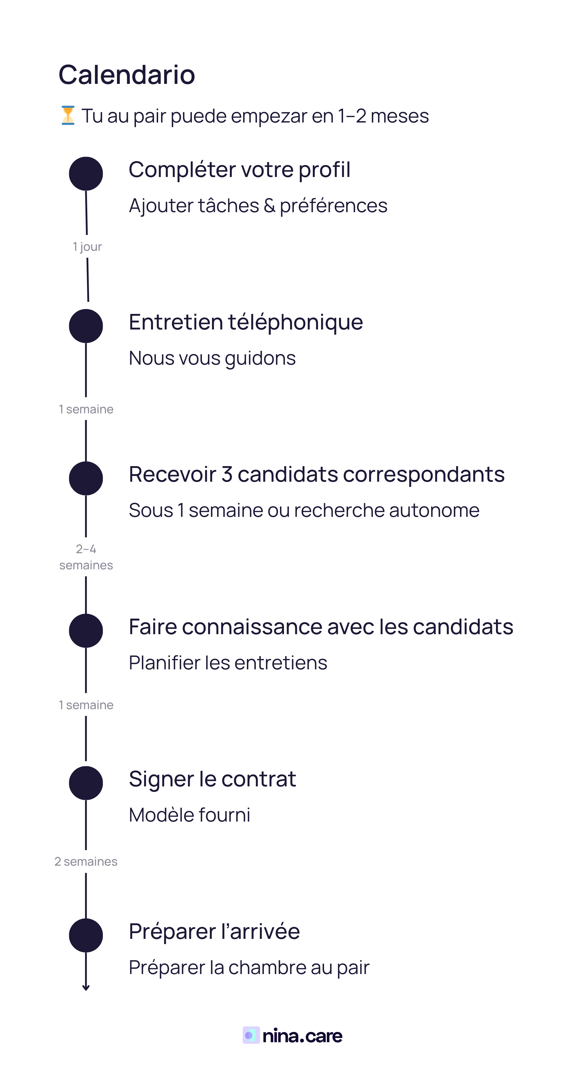 Más de 3.000 familias eligieron un/a au pair a través de Nina.care: menos estrés, más estructura, y los niños aprenden inglés o español. Muchos au pairs tienen carnet de conducir y experiencia con recién nacidos. En muchos casos, tu au pair puede empezar en 2 meses.