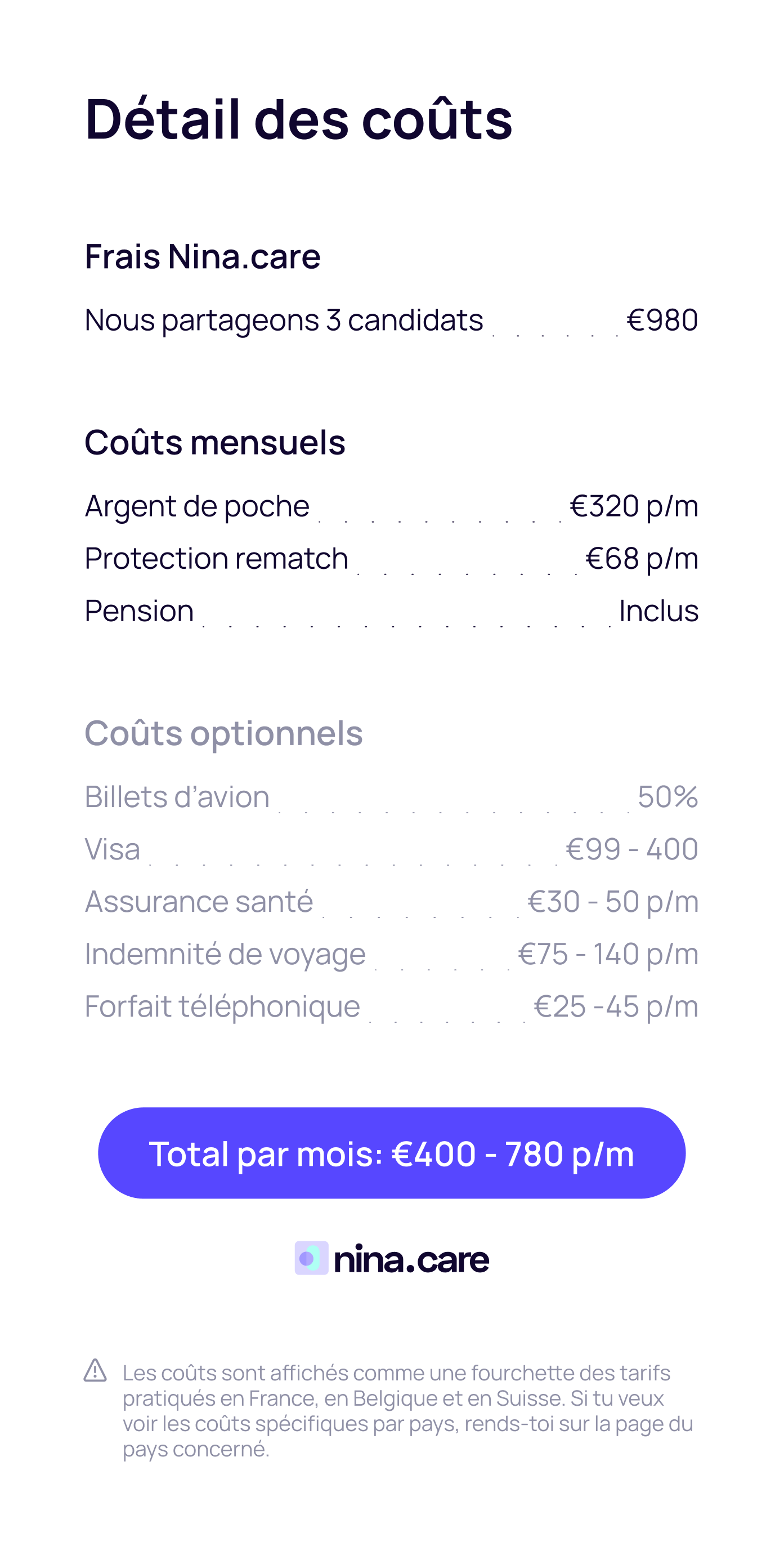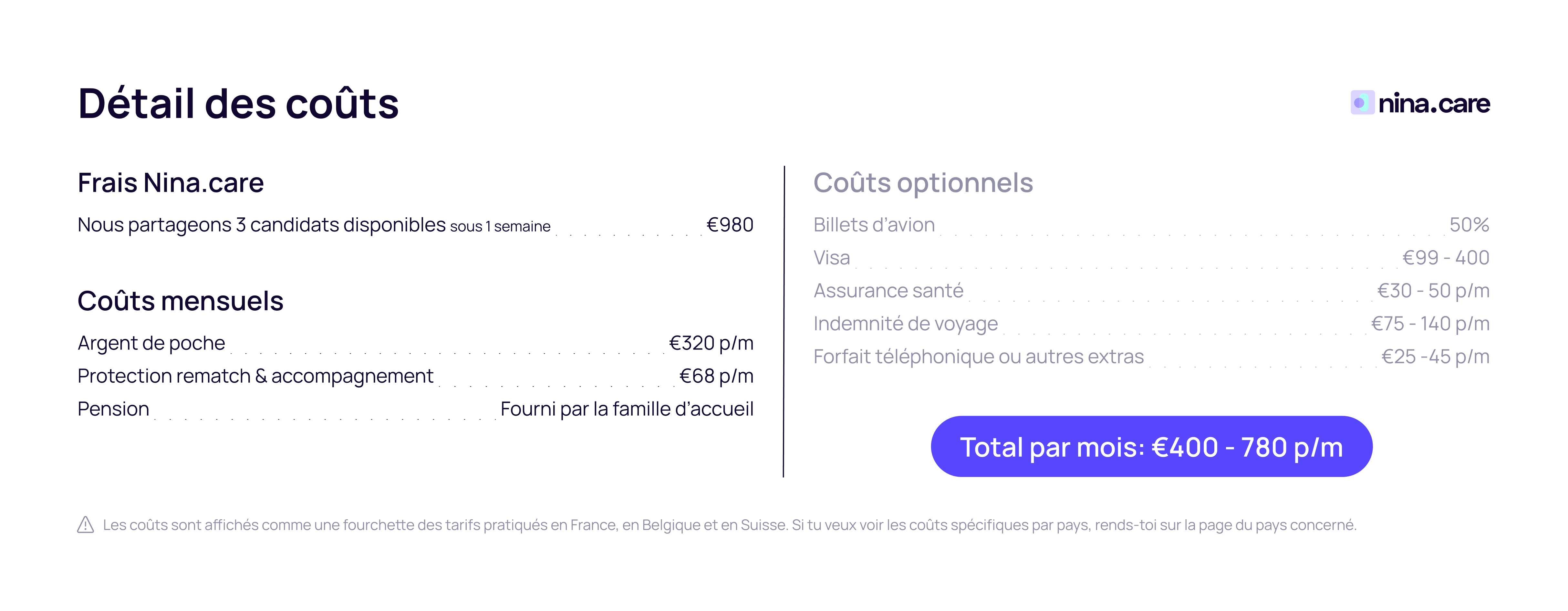 Argent de poche, questions de visa, infos sur le pays – on s'occupe de tout.