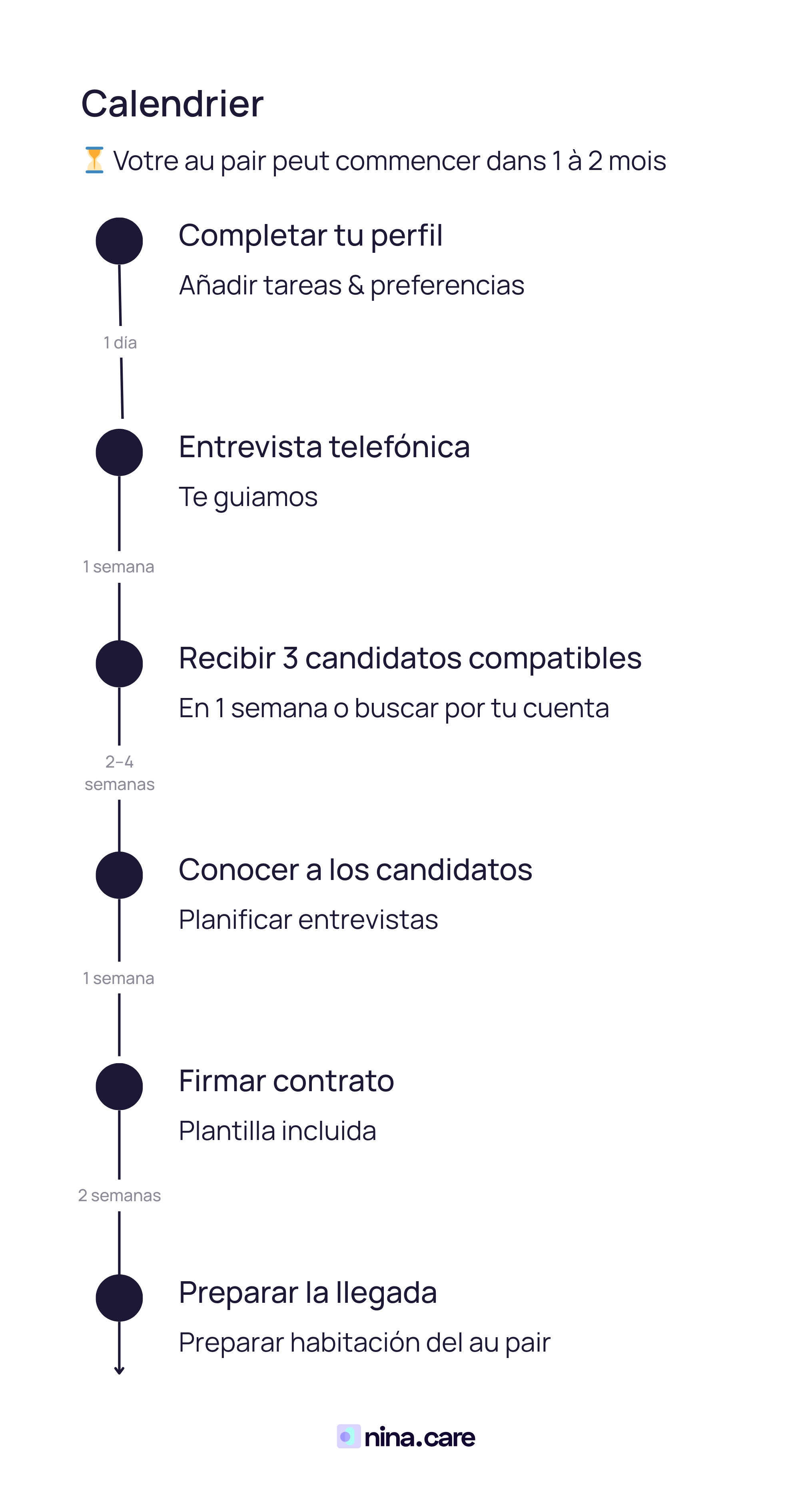 Plus de 3 000 familles ont choisi Nina.care : moins de stress, plus de structure, et les enfants apprennent l’anglais ou l’espagnol. Beaucoup ont le permis et de l’expérience avec les nouveau-nés. Souvent, votre au pair peut commencer sous 2 mois.