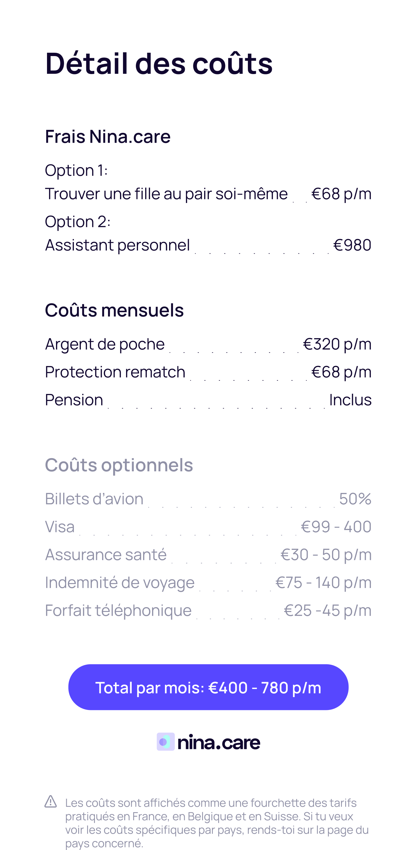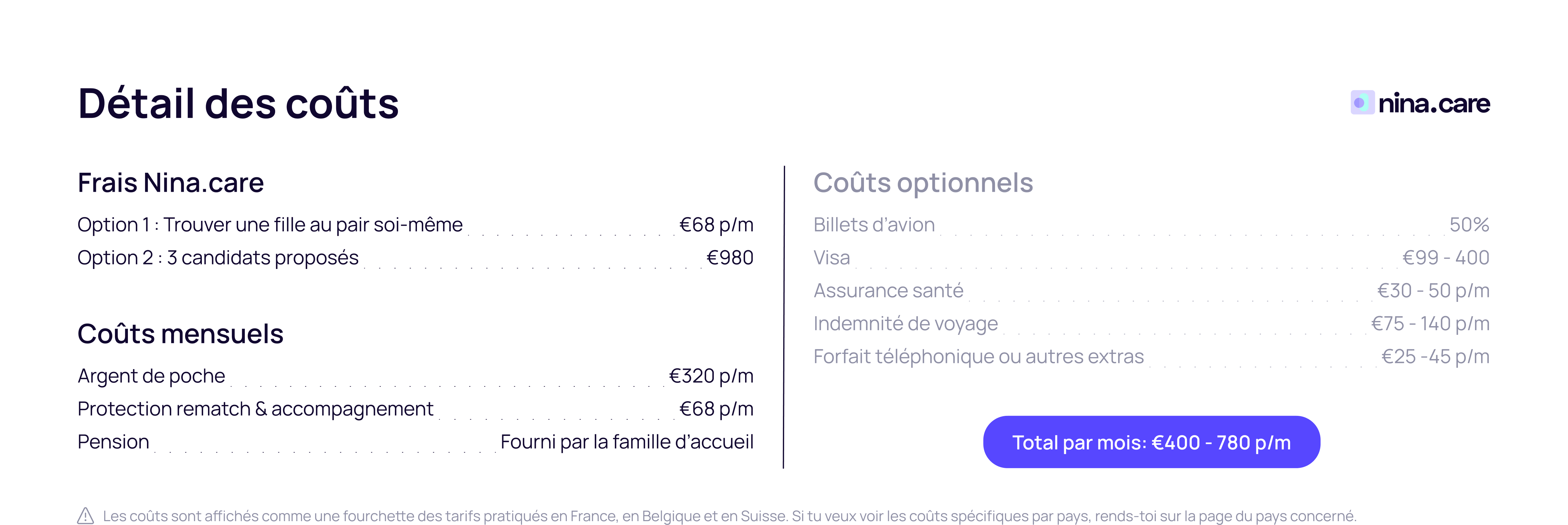 Découvrez les informations détaillées sur les coûts dans votre pays !