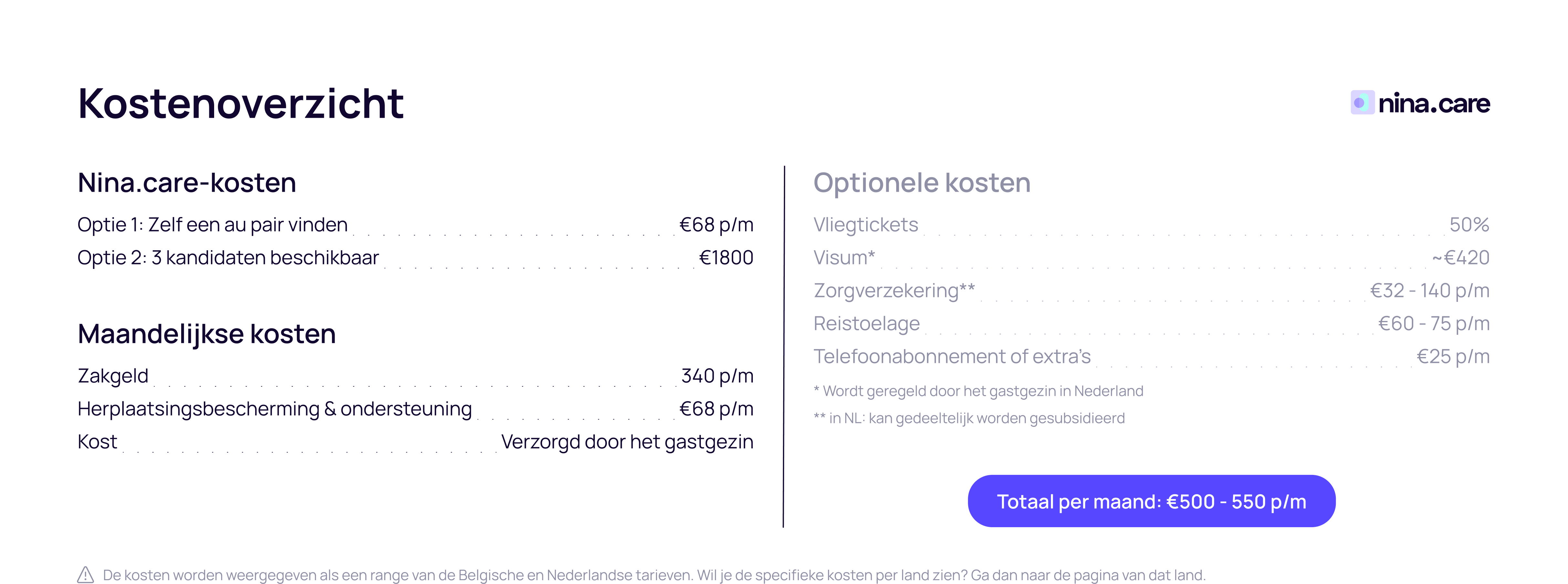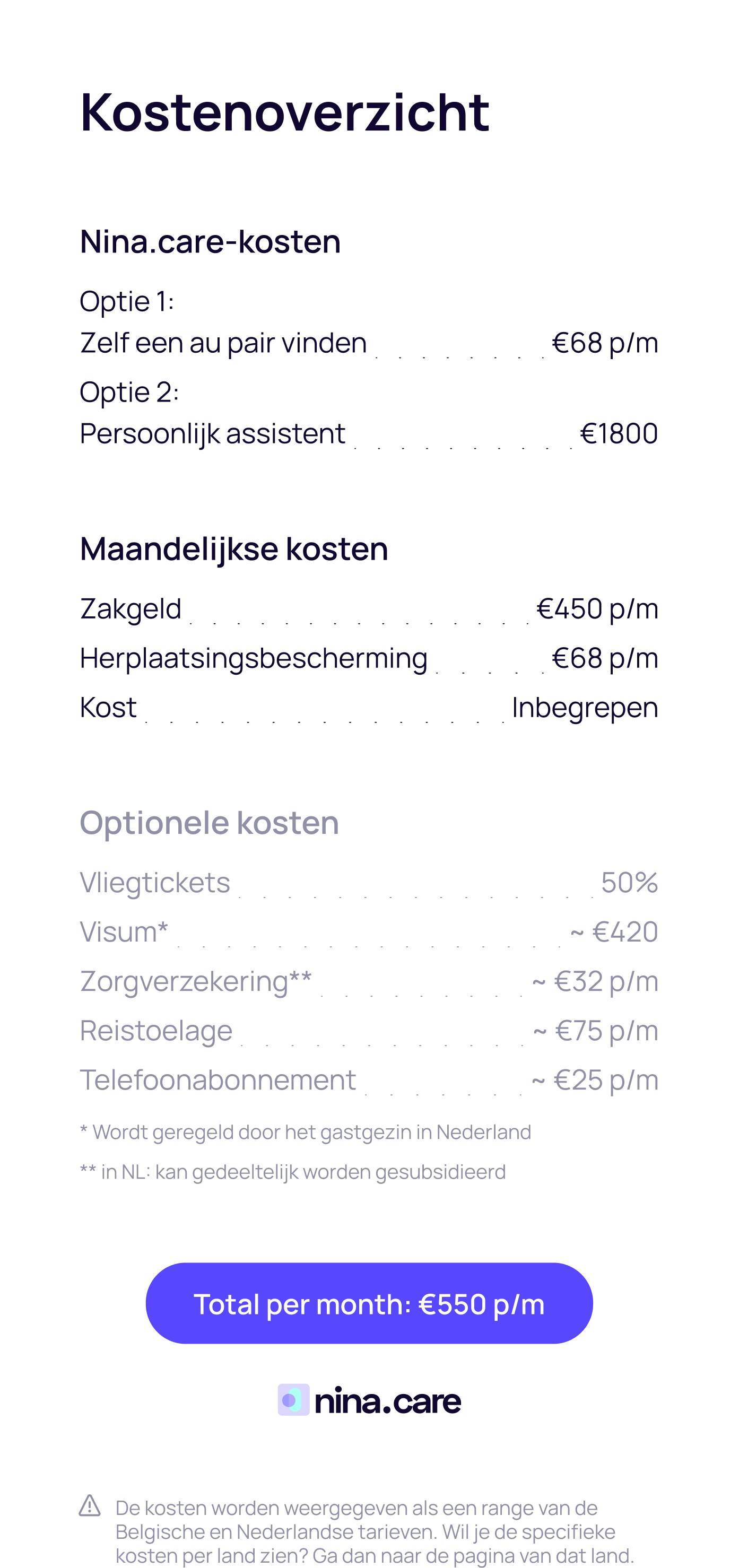 Vind gedetailleerde informatie over de kosten in jouw land!