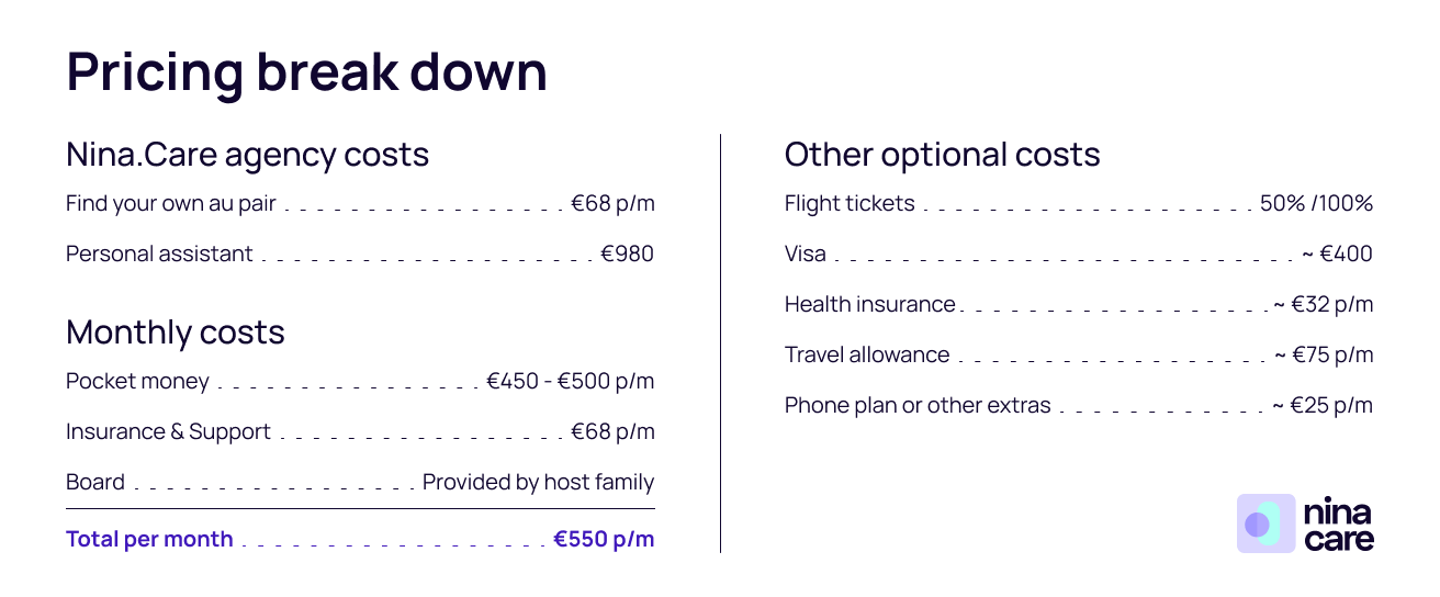 Agencies and IAPA-accredited organisations charge €150–€2,500 for matching and visa/registration help. Note: Belgian region rules can differ (Flanders/Wallonia/Brussels), which can affect paperwork costs. Families who recruit privately usually pay for paperwork and mandatory insurance registration.