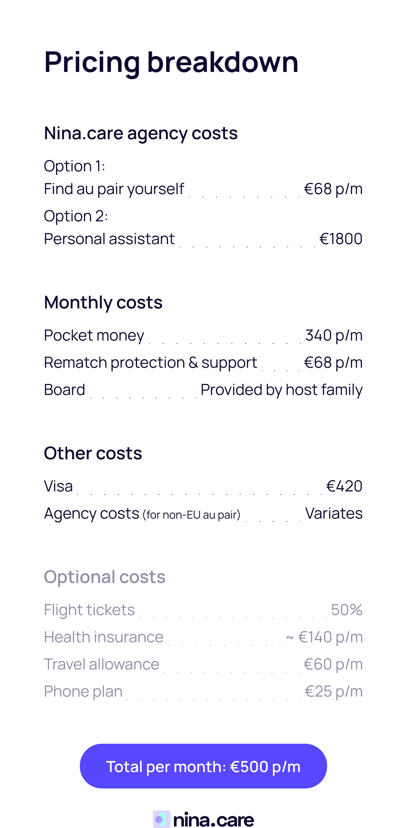 Families may also contribute toward transport, activities, or language courses, bringing the average monthly cost for families to around โฌ500 per month.
