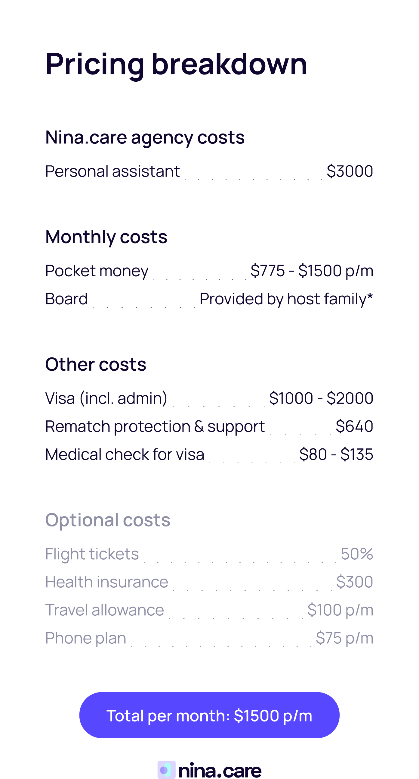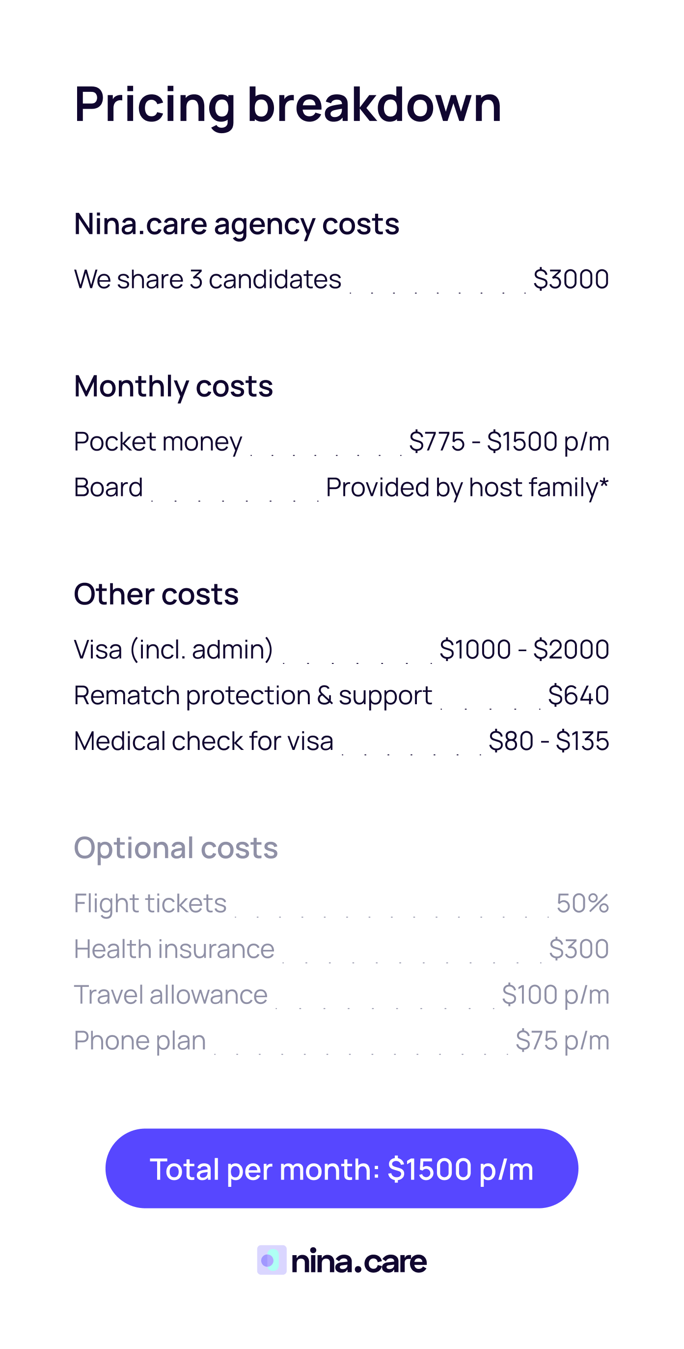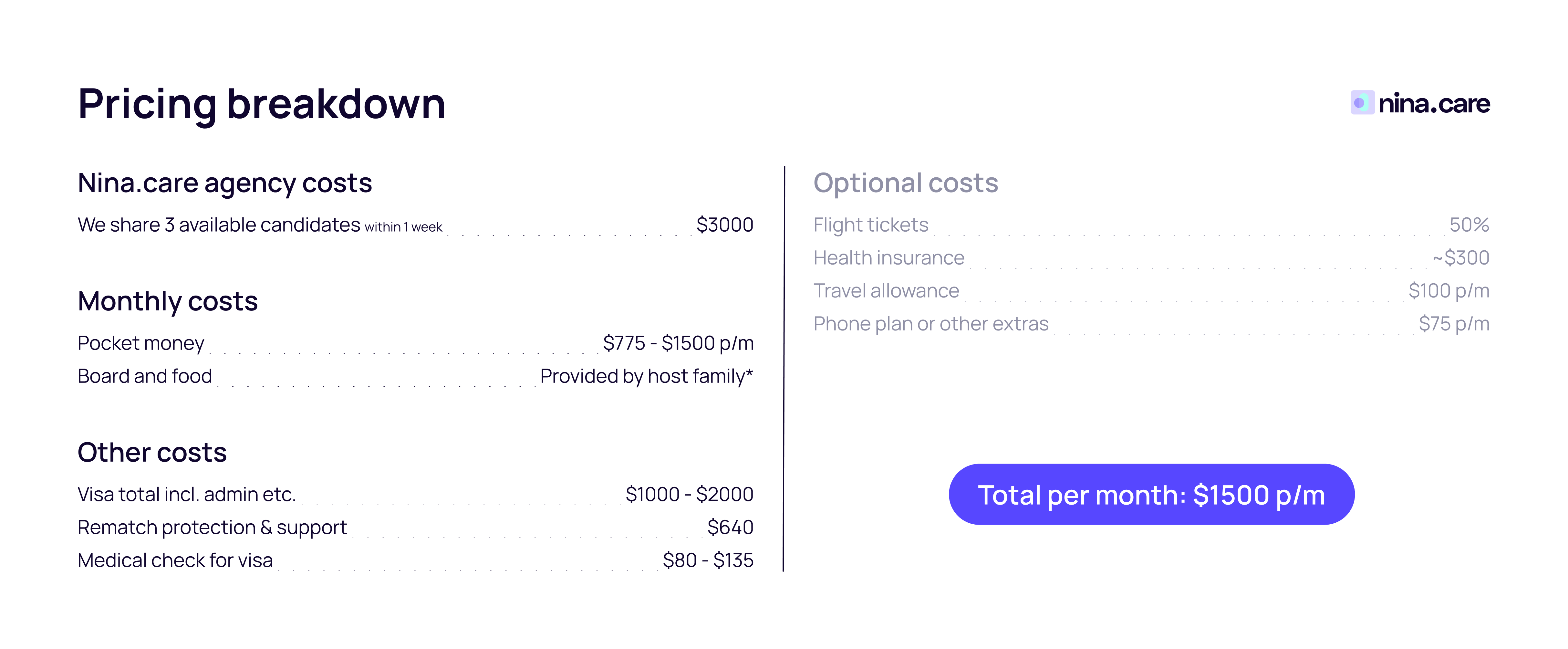 Because of these included benefits, the average monthly cost for families is around $1500, though this can vary depending on additional support such as transport or leisure allowances.